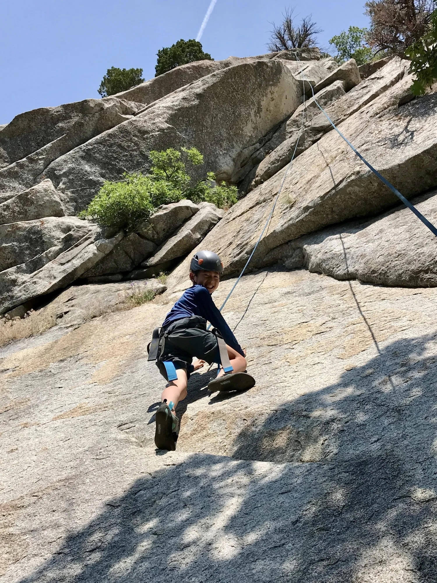 Depending on maturity and interest, students may learn to clip and clean bolts and bolted anchors, place stoppers and cams, and equalize natural-protection anchors. Multi-pitch may be included, if appropriate for participants.